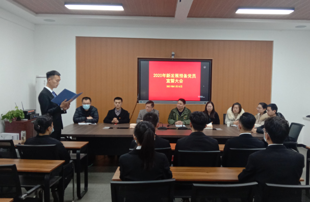 在庄严的《国际歌》歌声中,入党宣誓仪式正式开始。党总支副书记成元学依次为每位预备党员佩戴党员徽章。随后,预备党员整齐列队,面向党旗庄严宣誓。预备党员代表张艳清发言,她代表全体预备党员感谢党组织的培养与指导,希望全体党员都能永远牢记这个神圣时刻,把入党誓词作为自己的终身追求、终身修养和终身实践。入党积极分子杨金辉代表全体入党积极分子表示,要在思想、学习、工作和生活中发挥先锋模范作用,争取早日加入党组织。成元学在总结发言中表示,同志们要恪守党旗下的诺言,更加严格地要求自己,时刻保持共产党员的先进性,时刻保持党员的先进模范作用,努力使自己成为一名优秀的共产党员。