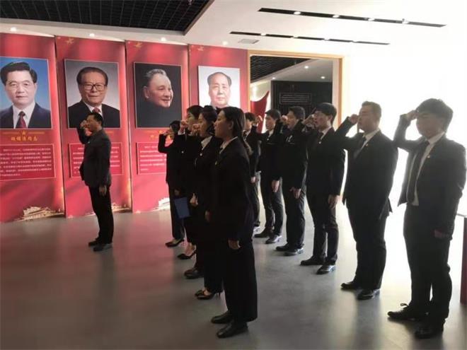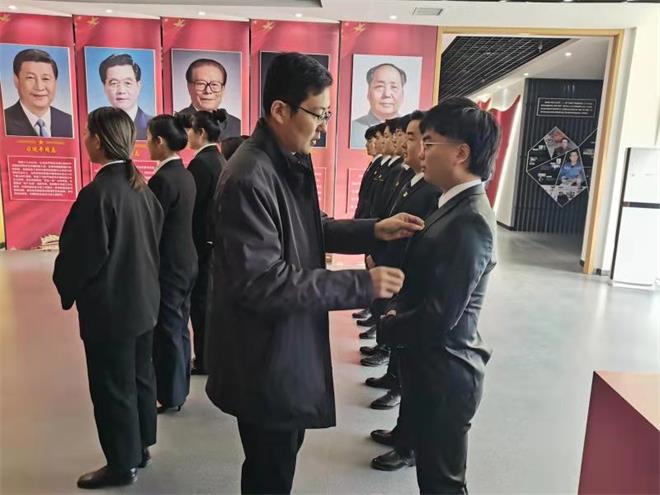 宣誓仪式在庄严的《国际歌》中拉开帷幕。林见松同志宣读参加入党宣誓的11名预备党员名单,随后宋庆辉为大家佩戴党员徽章,11名预备党员在殷会聪同志的领誓下,面对鲜红的党旗,高举右拳,庄严宣誓。