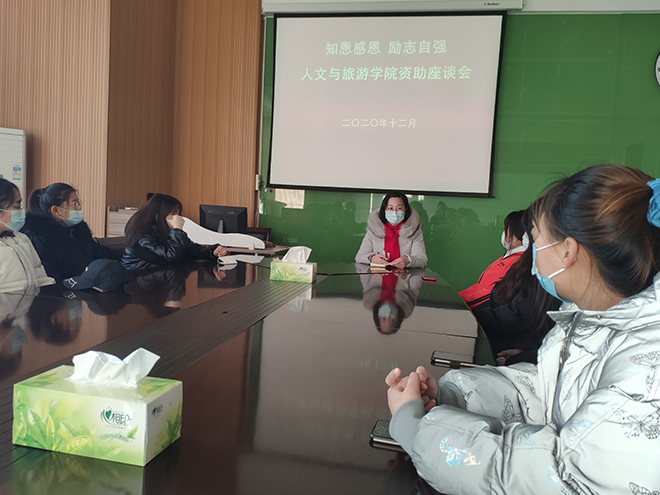 为深入了解家庭经济困难学生的学习生活状况、困难与需求,进一步做好资助育人工作,12月30日上午,人文与旅游学院召开了“知恩感恩、励志自强”资助座谈会,学院辅导员牛清艳主持,20名家庭经济困难学生代表参加了座谈。