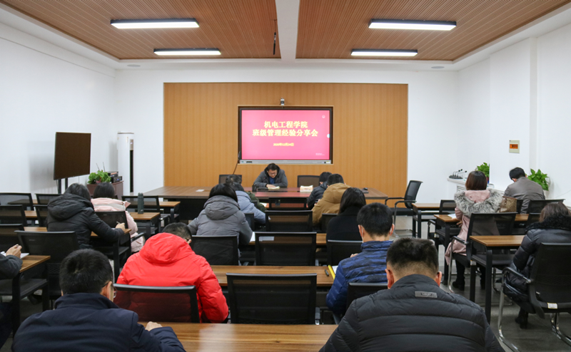 12月24日,机电工程学院在山润楼423会议室举办了班级管理经验分享会,优秀班主任张学军和孙又银分别分享了班级管理经验,全体辅导员和班主任参加会议。
