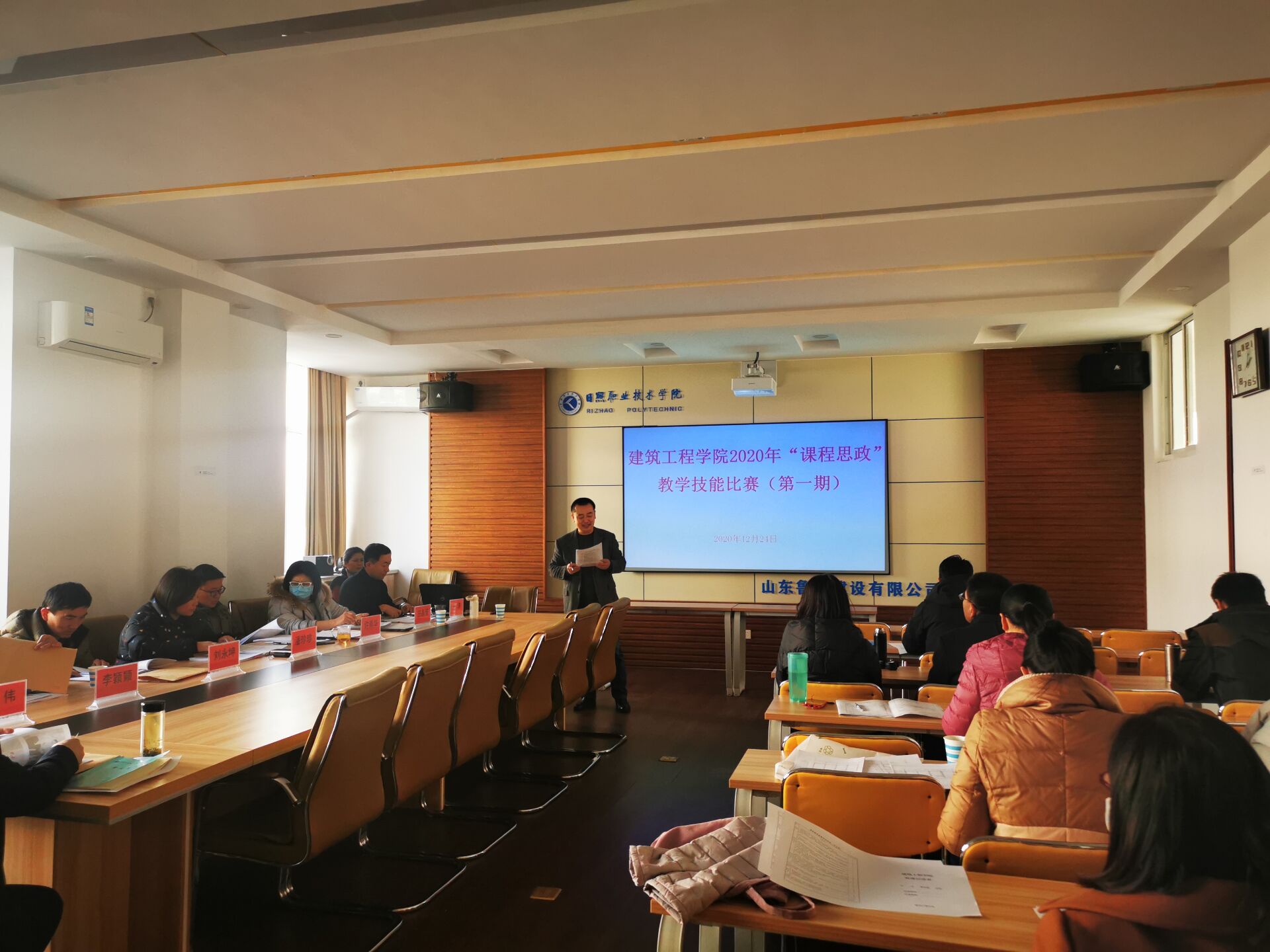 为全面贯彻党的十九大和全国高校思想政治工作会议精神,推进“课程思政”建设,加强教师之间“课程思政”教学经验的交流学习,深入挖掘课程思政元素和教师队伍建设,12月24日下午,建筑工程学院在海润楼N203会议室举办2020年“课程思政”教学技能比赛,12名教师参加比赛。领导班子全体成员,各科室负责人,教研室主任以及没有授课任务的老师全部到会观摩学习。副院长杨志刚主持赛事。经过激烈角逐和评委们的认真评审,评出一等奖1人,二等奖3人,三等奖4人,优秀奖4人。
