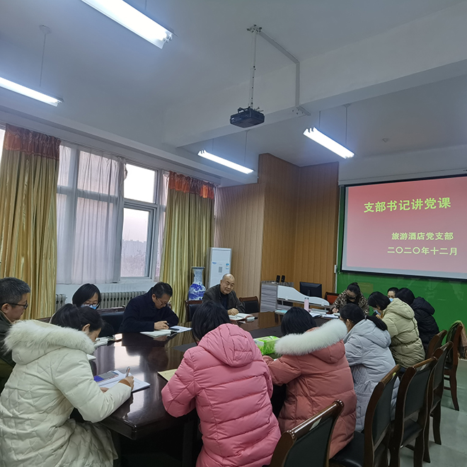 12月17日,人文与旅游学院旅游酒店党支部书记吉良新在和润楼三楼会议室为旅游酒店党支部全体党员做了“认真学习十九届五中全会精神,努力建设教育强国”主题党课。