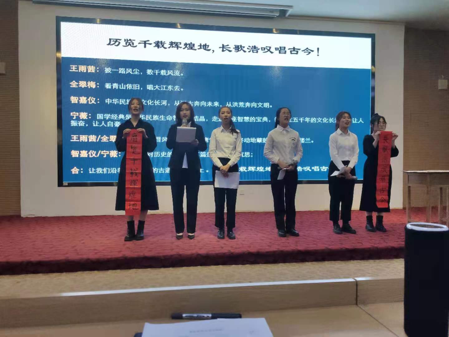 中华文化源远流长,积淀着中华民族最深层的精神追求,传承着中华民族的精神基因。为提升我院学生的人文素养,培养高尚道德,提高学习能力,创意设计学院鹿鸣国学社于12月22日下午在地滋楼A区二楼报告厅举办了“学习习近平用典”为主题的国学诵读活动。鹿鸣国学社指导教师贾丽霞、团总支辅导员担任评委,学生会干部、2020级学生代表参加本次活动。