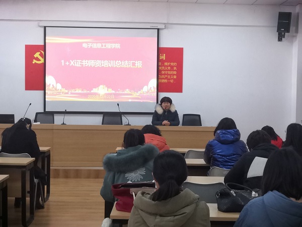 12月22日下午,电子信息工程学院在地滋楼A421会议室举行1+X证书师资培训总结汇报会。会议由副院长刘静主持,郑艳飞、毛晓娜、王涛三位老师做了1+X证书师资培训学习情况汇报,全体老师参加学习。