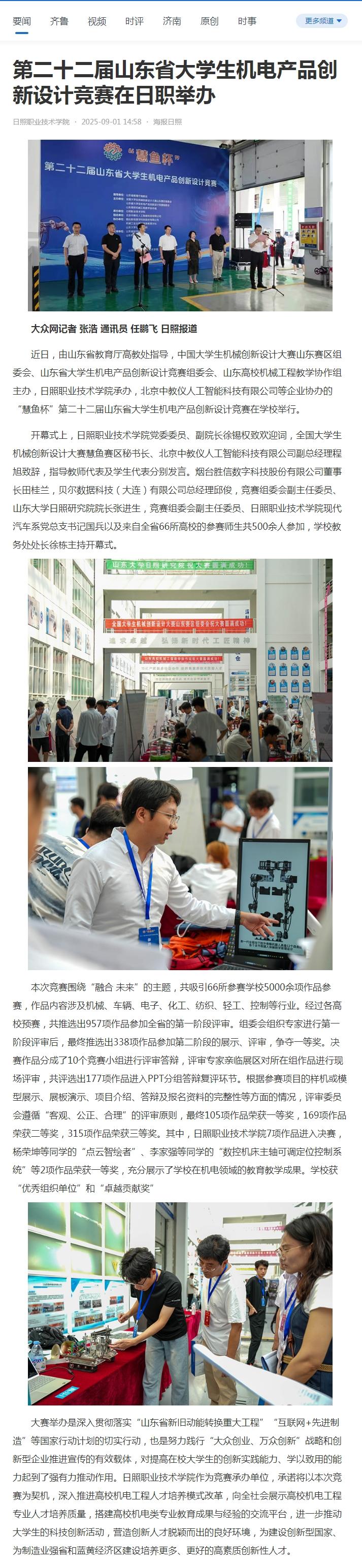 海报新闻客户端报道:第二十二届山东省大学生机电产品创新设计竞赛在日职举办