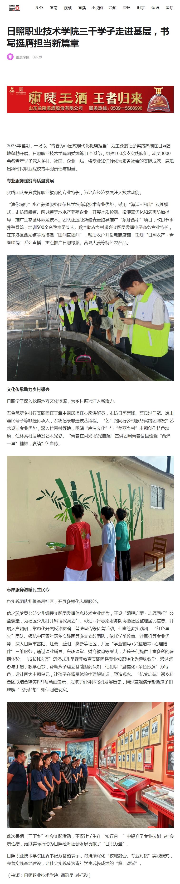 齐鲁壹点新闻客户端报道:日照职业技术学院三千学子走进基层,书写挺膺担当新篇章