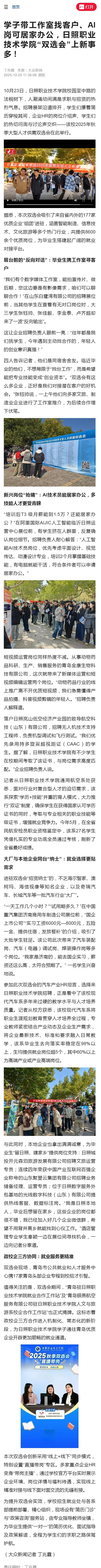大众新闻客户端报道:学子带工作室找客户、AI岗可居家办公,日照职业技术学院“双选会”上新事多!
