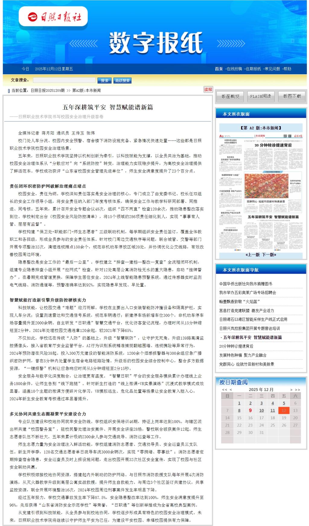 日照日报报道:五年深耕筑平安 智慧赋能谱新篇——日照职业技术学院书写校园安全治理升级答卷