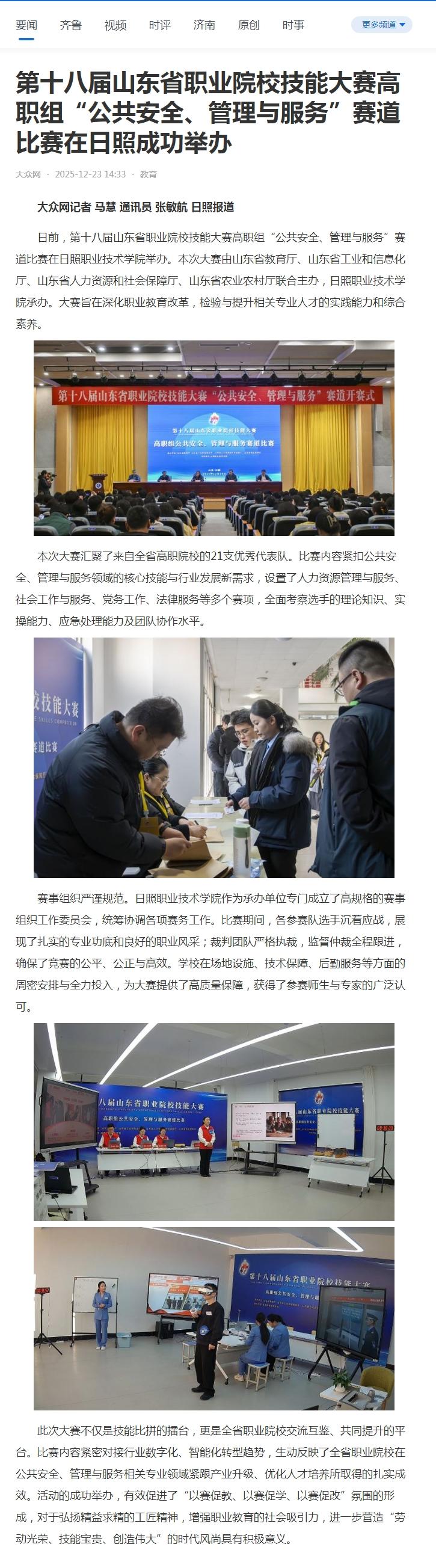 海报新闻客户端报道:第十八届山东省职业院校技能大赛高职组“公共安全、管理与服务”赛道比赛在日照成功举办
