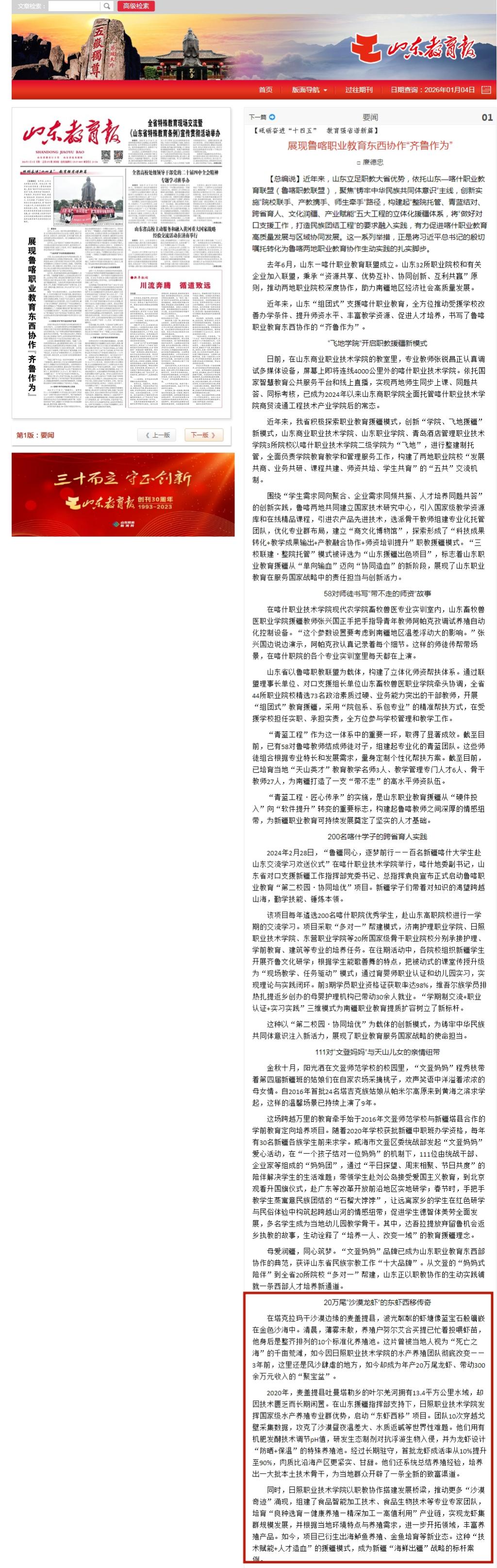 山东教育报报道:展现鲁喀职业教育东西协作“齐鲁作为