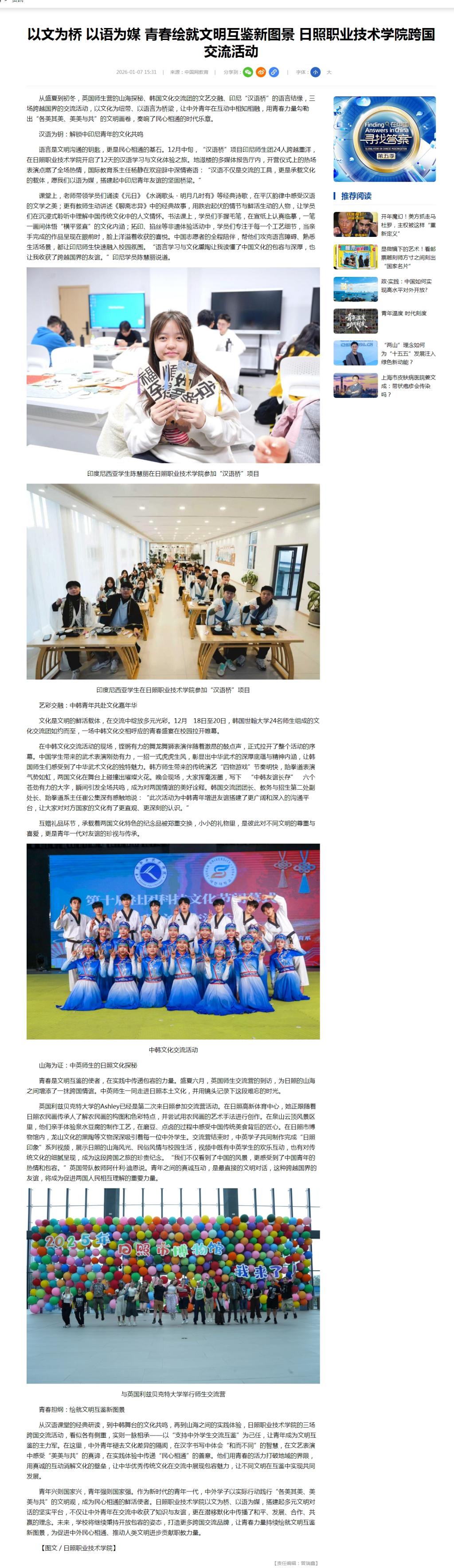 中国网报道:以文为桥 以语为媒 青春绘就文明互鉴新图景 日照职业技术学院跨国交流活动