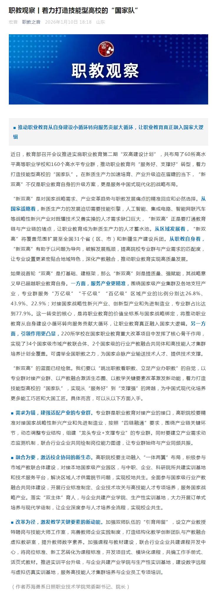 职教之音报道:职教观察丨着力打造技能型高校的“国家队”