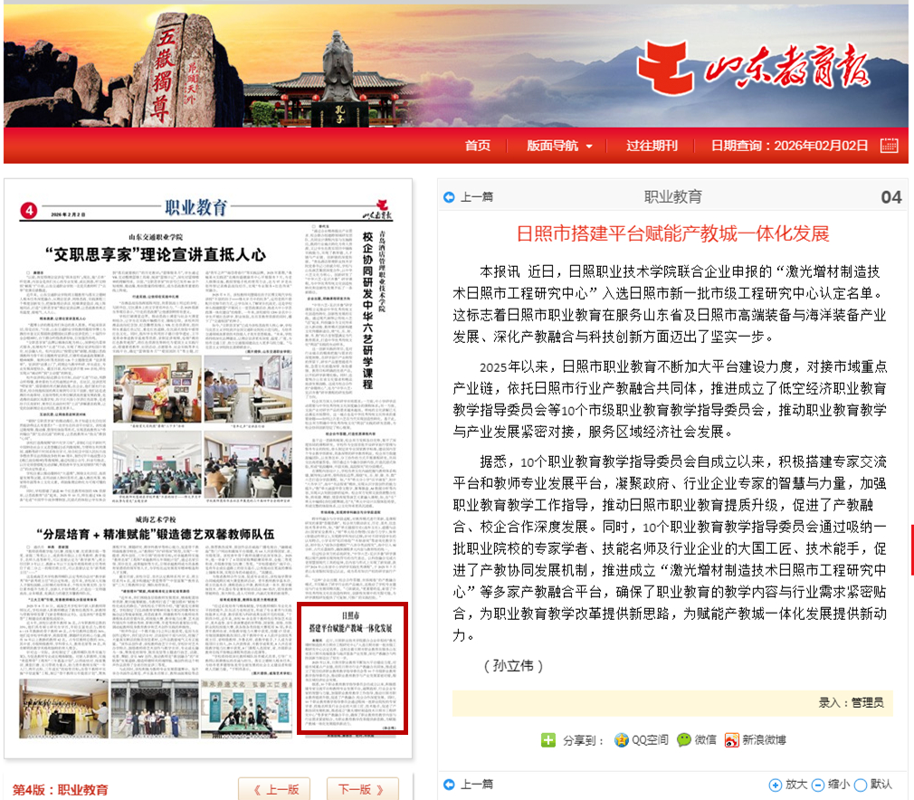 山东教育报报道:职业教育日照市搭建平台赋能产教城一体化发展