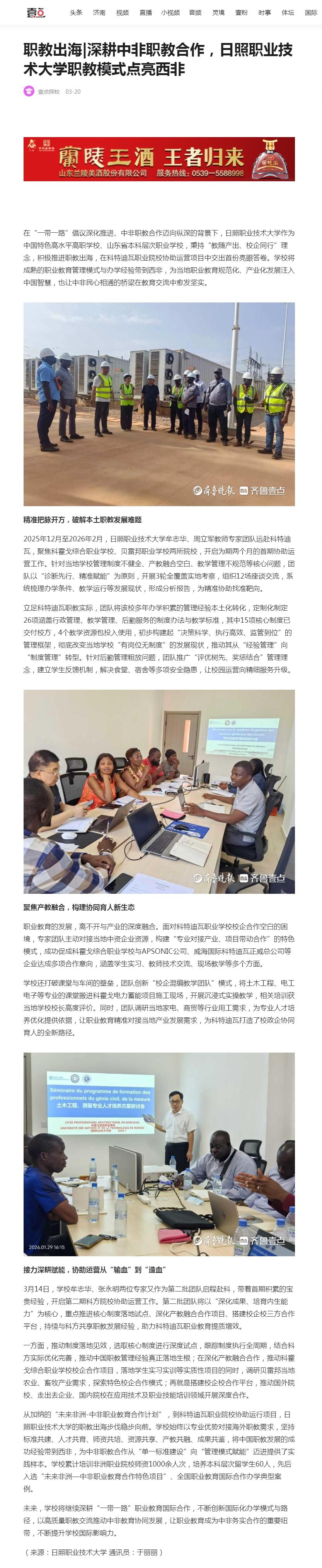 齐鲁晚报·齐鲁壹点客户端报道:职教出海_深耕中非职教合作,日照职业技术大学职教模式点亮西非