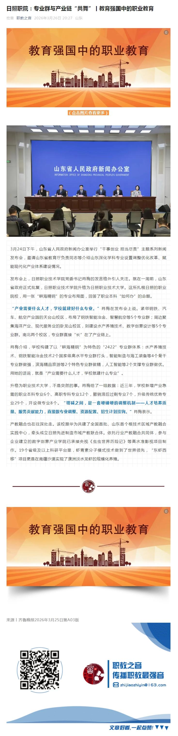 职教之音报道:日照职院:专业群与产业链“共舞”丨教育强国中的职业教育