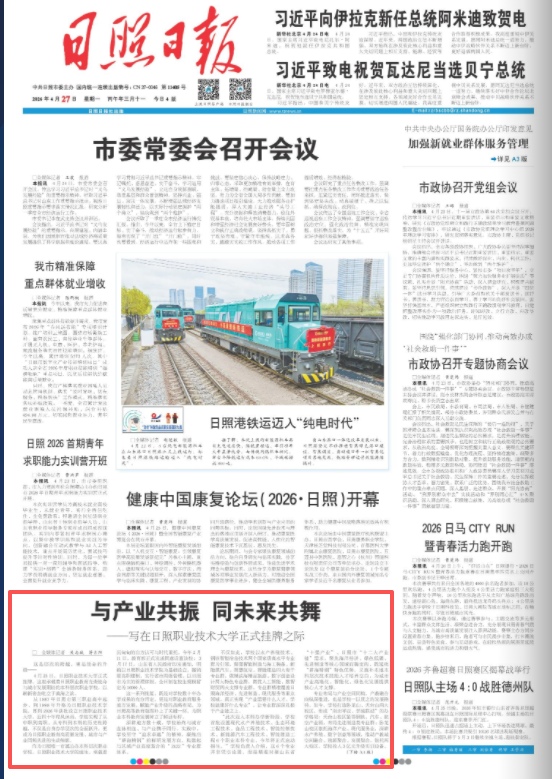 日照日报报道:与产业共振 同未来共舞——写在日照职业技术大学正式挂牌之际